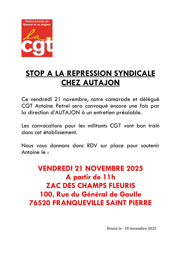 STOP A LA REPRESSION SYNDICALE CHEZ AUTAJON