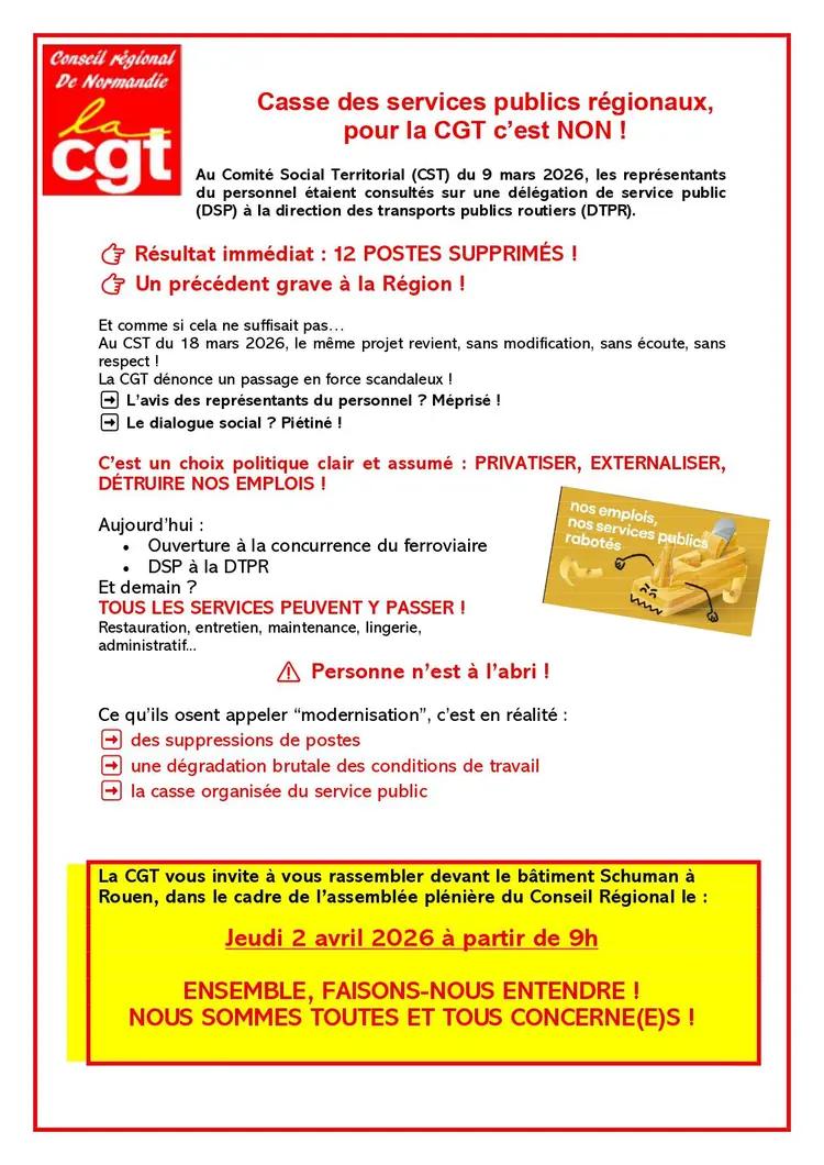 2 Avril: Mobilisation des salarié.e.s du Conseil Régional Normandie !