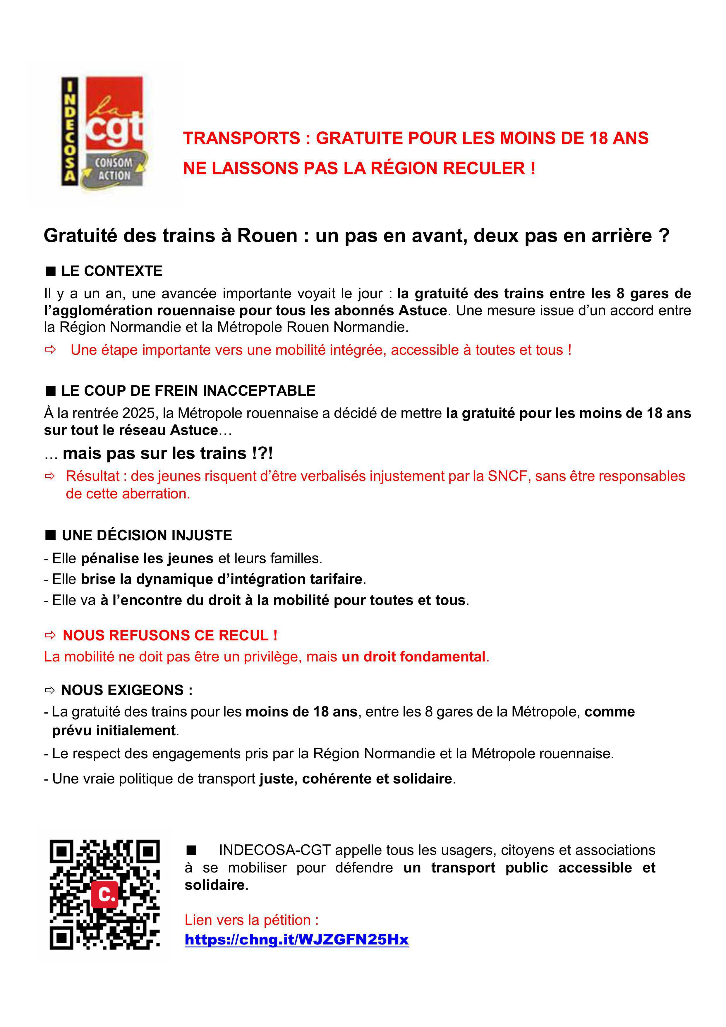 INDECOSA-CGT appelle tous les usagers, citoyens et associations à se mobiliser pour défendre un transport public accessible et solidaire.
