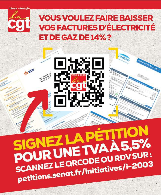 Soyons nombreuses et nombreux à signer et faire signer la pétition pour exiger une TVA à 5,5% de l'électricité et du gaz !